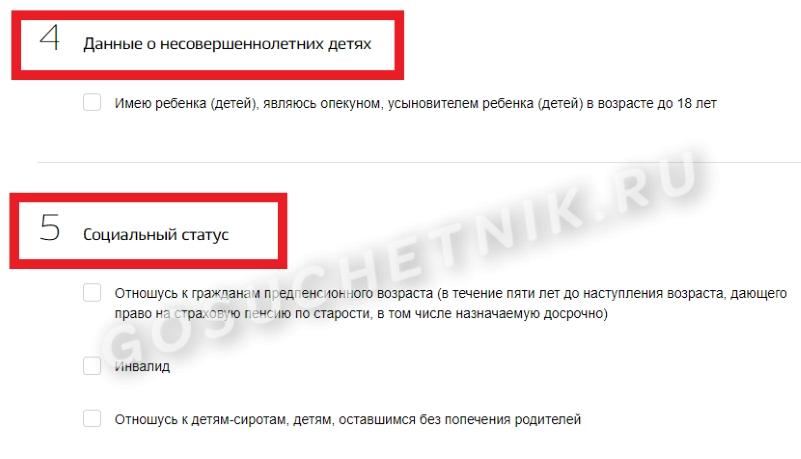 - социальный статус заявителя;