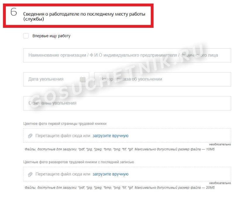 - сведения о последнем месте работы, если таковые имеются. Здесь же указываются причины увольнения;