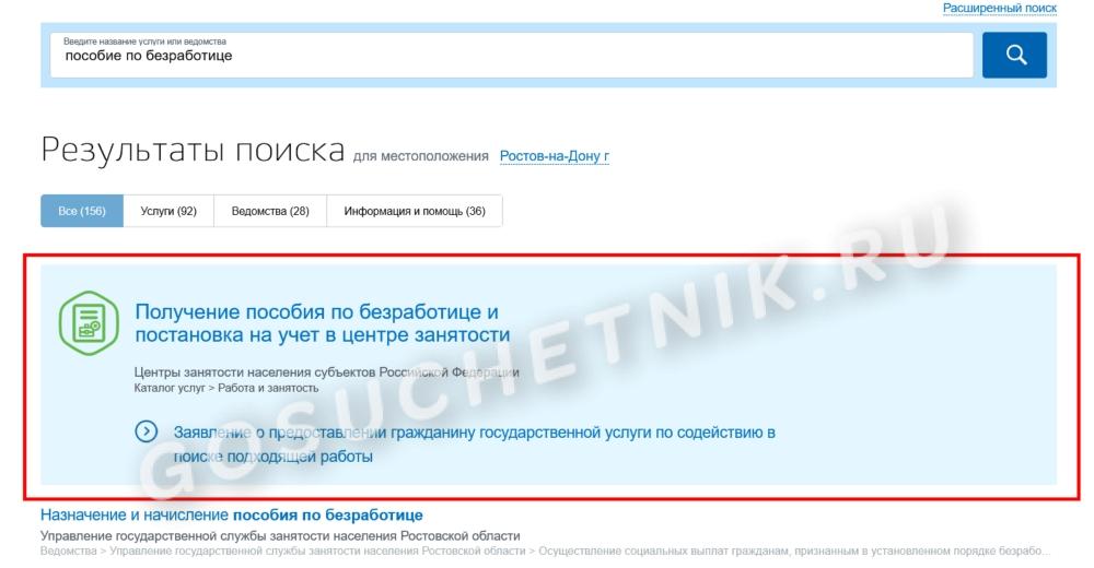 Шаг 2. Введите «Пособие по безработице» в строке поиска или выберите этот платеж в каталоге.