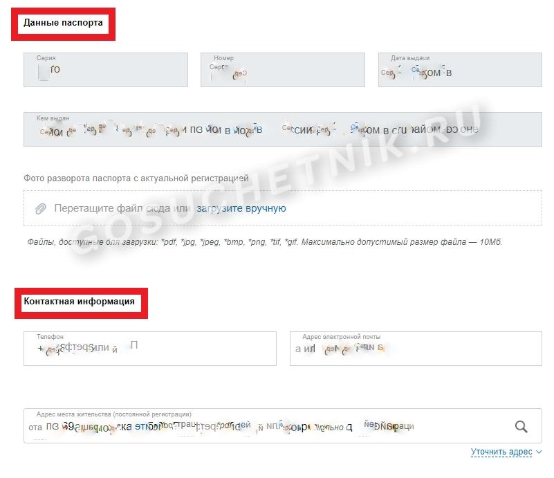 Поскольку заявка подается из проверенной учетной записи, основная информация о заявителе уже будет введена в форму. Это ФИО, ИНН, паспортные данные, телефон для связи и адрес электронной почты. Далее начинаются поля, которые необходимо заполнить вручную: