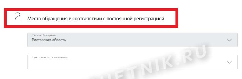 - В блоках «место жительства» и «место работы» введите персональные данные, укажите регион будущего места работы и службу занятости, с которой в дальнейшем необходимо связываться лично.