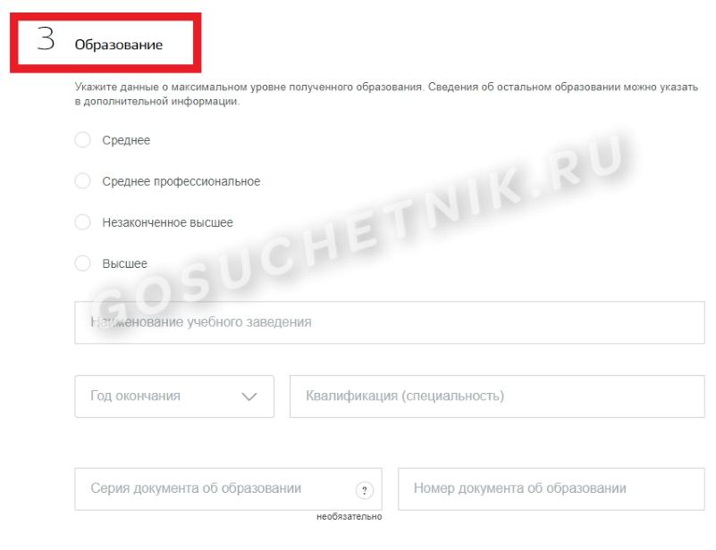 - образование. В этом случае указывается учебное заведение, серия и номер документа об образовании, год выдачи;