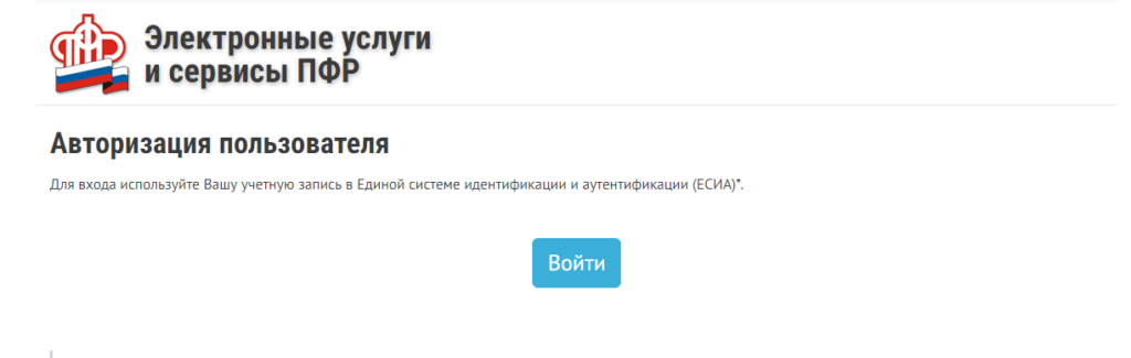 - Посетите сайт ПФР (https://es.pfrf.ru) как зарегистрированный пользователь.